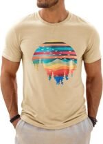 - 【Features】: Mens summer tshirts are feature with short sleeve, round neck, solid color with geometric nature sunset printed, that add a timeless and versatile style to these t-shirts, and loose fit style give you more relaxed and freedom